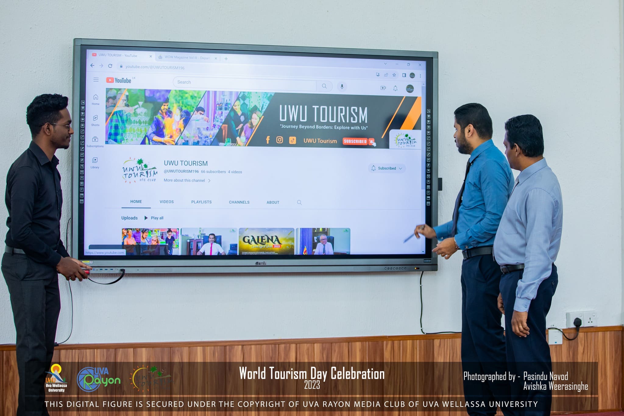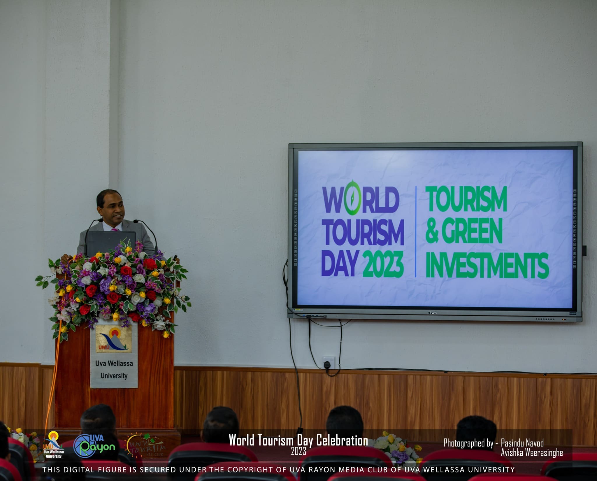 On 27th of September 2023 the Department of Tourism Studies celebrated the World Tourism Day 2023. This is an annual event organized by 3rd year undergraduates of Hospitality, Tourism and Events Management degree program. In 2023 the theme was “Tourism and Green Investments” and parallel to the event there were many other activities done such as, launching of 3rd volume of ‘WOW’ magazine, conducting a home science workshop for school students, exploration of hidden destinations at Rajakaduruwela waterfall, green investment program at Alugolla, launching of the ‘UWU Tourism’ YouTube channel. Prof. Jayantha Lal Ratnasekera, Vice-Chancellor of Uva Wellassa University, participated as the event’s chief guest. In addition, the deans, heads of departments and lecturers of Uva Wellassa University and representative from Ministry of Tourism, Uva Province also took part in this event. Dr. Shaffaath Amidon, the director of M & S Travel Solutions delivered the keynote address.