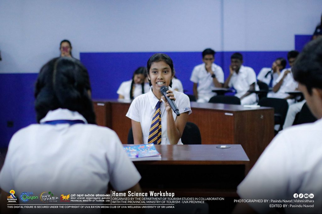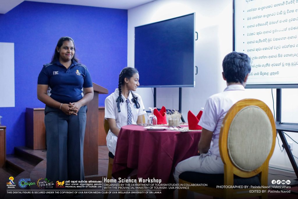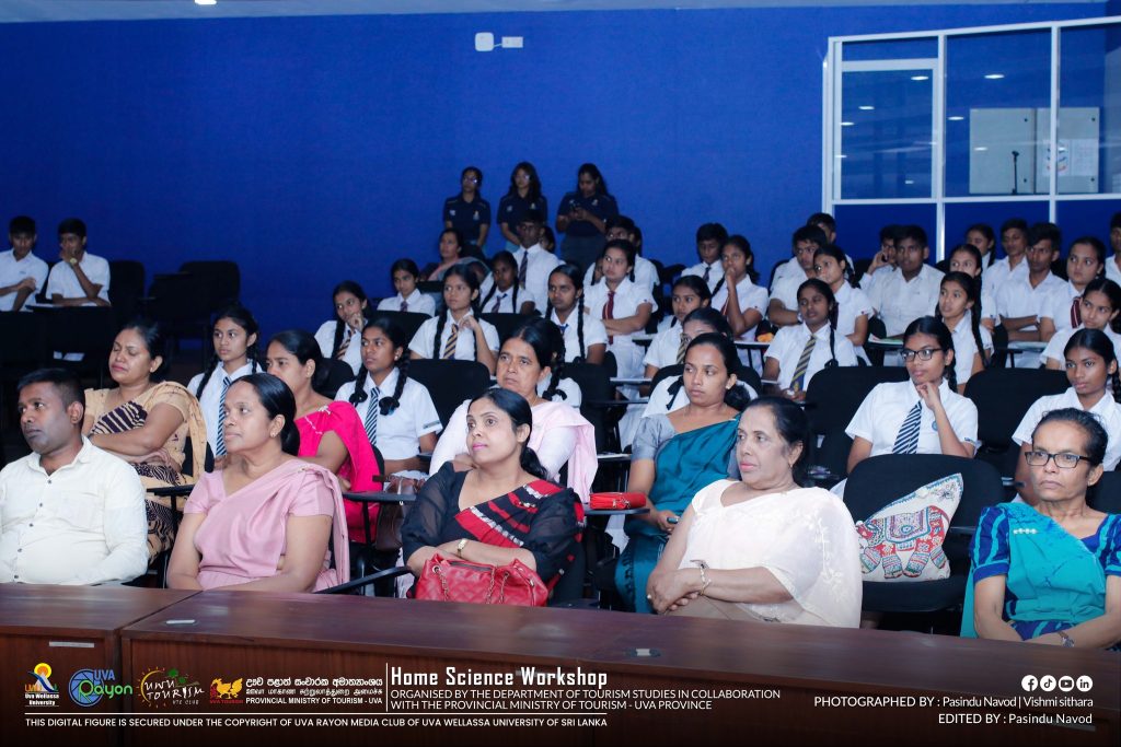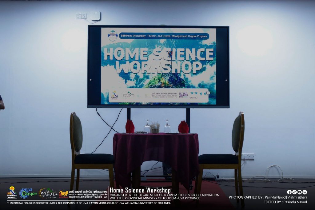 In parallel to the World Tourism Day Celebrations 2025, the third-year undergraduates of the HTE degree programme organized a “Home Science Workshop” for the Advanced Level students of Uva Province. The workshop was held on 28th October 2025 from 08.30 a.m. onwards at the Library Auditorium.