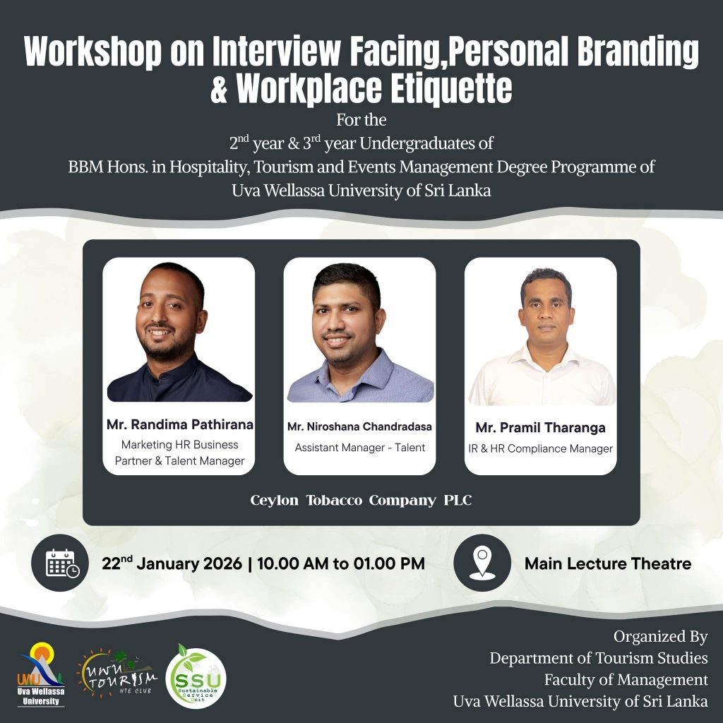 On 20th January 2026, second-year undergraduates participated in a field visit to DoubleTree by Hilton Weerawila Rajawarna Resort as part of their experiential learning in sustainable hospitality management. The resort provided an ideal setting for students to observe sustainability practices implemented within an upscale resort environment. The department extends its sincere gratitude for the hotel …