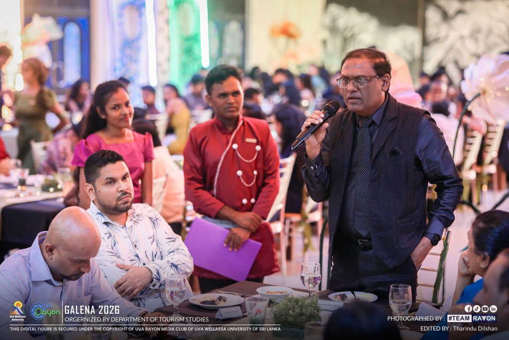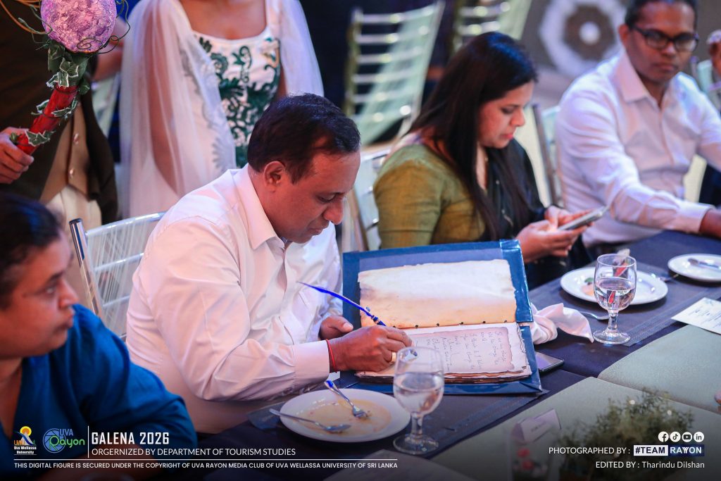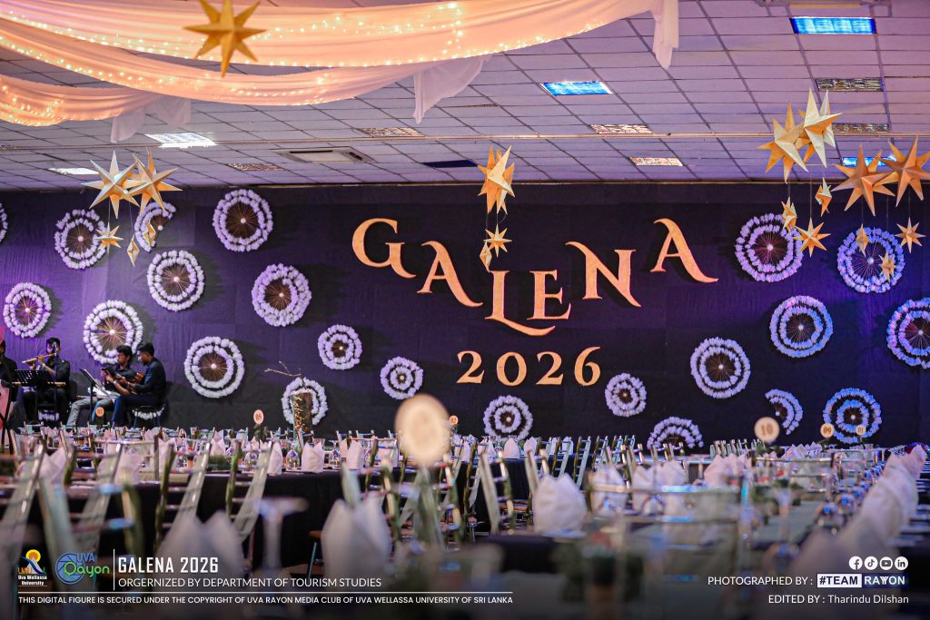 Galena 2026; the signature event organized by the third-year undergraduates of the Department of Tourism Studies was successfully held on 05th February 2026 at the university premises. Vice Chancellor, Senior Prof. Kolitha B. Wijesekara graced the occasion as the chief guest. Ms. Anusha Gokula Fernando – Chief Secretary (Uva Province), Mr. Upali Jayasekara – Secretary, Provincial Ministry of Tourism (Uva Province), Deans of the Faculties, Mr. Pramudith Thenabadu – Executive Director (The Pekoe Trail Organization), and many other guests, sponsors, academic and administrative staff members, alumni, and students participated in the event.